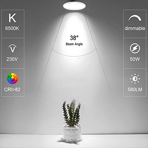 BIANCO FREDDO 6500K - Le lampadine a led GU10 forniscono un bianco freddo brillante 6500k, regalandoti una luce vivida e naturale. Fornendo 580 lumen di luce bianca fredda con un angolo del fascio di 38 gradi, questa lampadina a LED GU10 è il sostituto perfetto per le lampadine alogene senza l'abbagliamento intenso.
