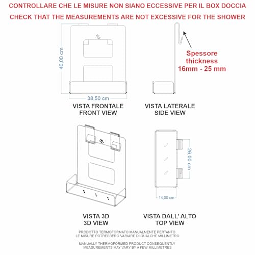 ✅ CONTROLLA CHE IL PORTASAPONI NON SIA TROPPO GRANDE: Le dimensioni di questo articolo sono considerevoli. Considera che lo spazio che occuperà nel box doccia sono di 38,50 cm in larghezza e di 15 cm in profondità. Assicurati che non ingombri troppo.