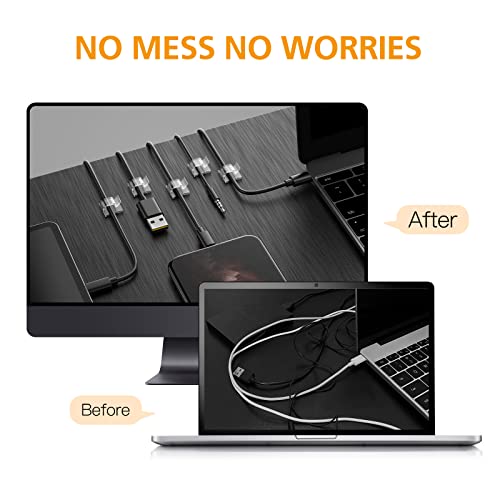 AGPTEK Pack of 60 Cable Clips, Self-Adhesive Cable Holder for Desk, Power Cord, Extension Cable, TV Cable, LAN Cable, Cable Clamp Set with Screws, No Trace Cable Management, Transparent
