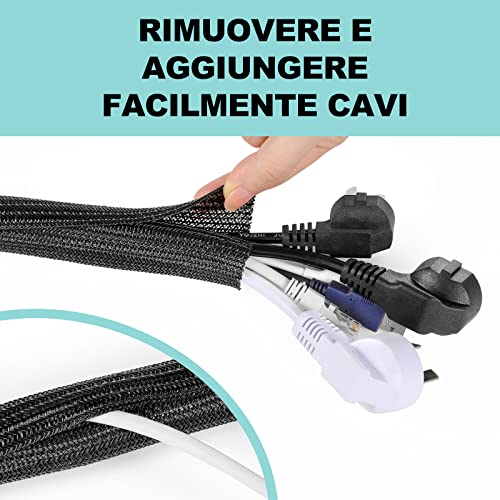 AGPTEK Guaina Cavi, Diametro 19 - 29 mm, Auto-Bloccante, Organizer Cavi Intrecciata, Raccogli Cavi 2 x 1,5 m, Flessibile,Nascondi sulla Scrivania, TV per Casa e Ufficcio,Nero