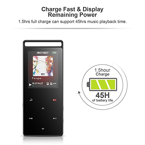 '【 all' abrasione 】 questo lettore musicale dall' aspetto alla moda è protetto da un zincato tramite galvanizzazione scocca in lega di zinco, che è resistente all' abrasione e durevole e vi dona una piacevole sensazione della mano. 1,8 schermo TFT a colori offre un chiaro e colorato (deve essere dapprima in 160 * 128 converte) con basso consumo energetico.