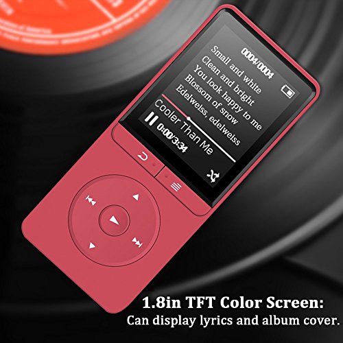 AGPTEK Lettore MP3 8 GB, A20 Lettore Musicale Senza Perdita di Audio 80 Ore di autonomia con Funzione FM Radio e Uno Slot per Scheda Micro SD, Rosso