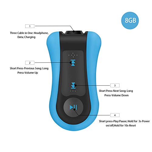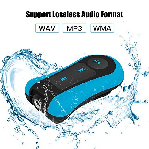 AGPTEK S12E - Lettore MP3 da nuoto da 8 GB, IPX8, impermeabile, con cuffie impermeabili, colore: blu