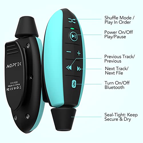 AGPTEK Lettore MP3 Nuoto con Clip, 8GB Lettore Musicale Impermeabile IPX8 con Bluetooth e Cuffie Subacquee per Nuoto, Sport Acquatici, Corsa