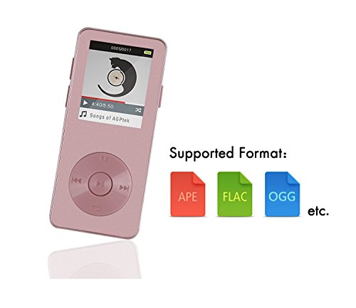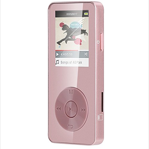 AGPTek M08- metallo lettore MP3 8 GB schermo 1,8" con FM radio e la fascia da braccio regolabile, Rosa