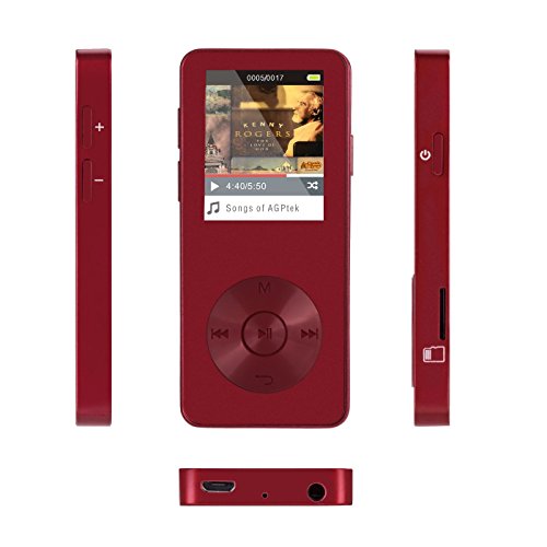 AGPTek M08- metallo lettore MP3 8 GB schermo 1,8" con FM radio e la fascia da braccio regolabile, Rosso