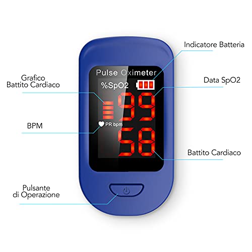 AGPTEK Saturimetro da dito Professionale Pulsossimetro Digitale Ossimetro Portatile con Display OLED per Frequenza Del Polso e La Saturazione di Ossigeno SpO2 e Cardiofrequenzimetro,Blu Oximeter