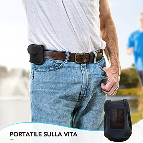 【RISPARMIO ENERGETICO INTELLIGENTE& PORTABILE】 il pulsossimetro da dito professionale si spegne automaticamente dopo 8 secondi di misurazione. Inoltre, è molto compatto e portatile, dotato di una custodia per il trasporto che può essere appesa alla cintura o alla chiave. Inoltre viene fornito con un cordino, che può essere portato al collo o al polso.