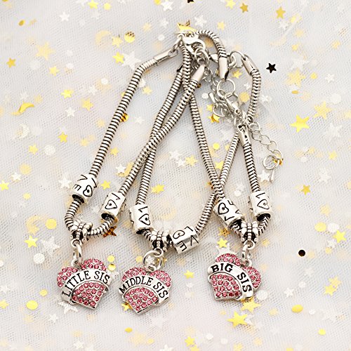 AGR8T Sorella Bangle bracciali Regali Best Friend Big Middle Little Sister Love Heart Crystal Donne Gioielli 3pcs
