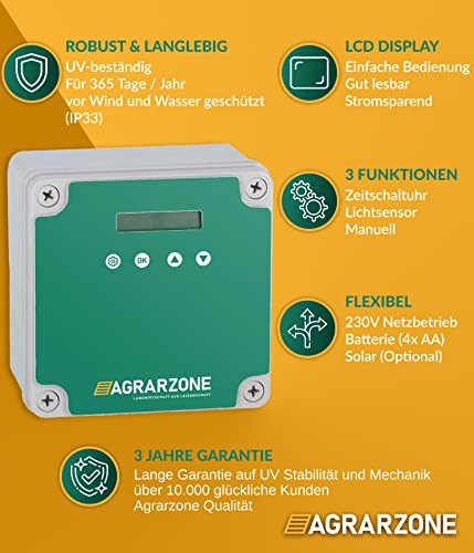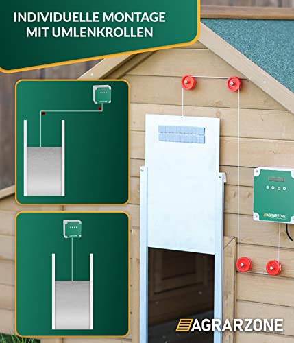 Agrarzone Porta automatica per pollaio con cursore 43 x 40 cm | Apriporta automatico per pollaio con timer e sensore di luce | Alimentazione a rete o a batteria | Porta per la sicurezza dei polli