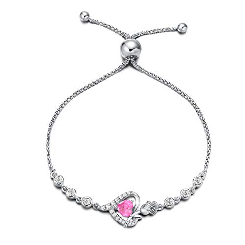 Agvana Bracciali da Donna, Regolabile Braccialetti Cuore Fiore Rosa in Argento Sterling 925, Ottobre Birthstone Rosa Tourmaline Heart Bracciale Gemma Regalo di Gioielleria per Donna Regalo