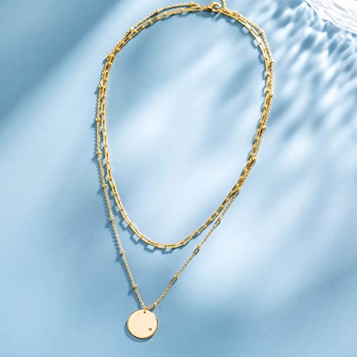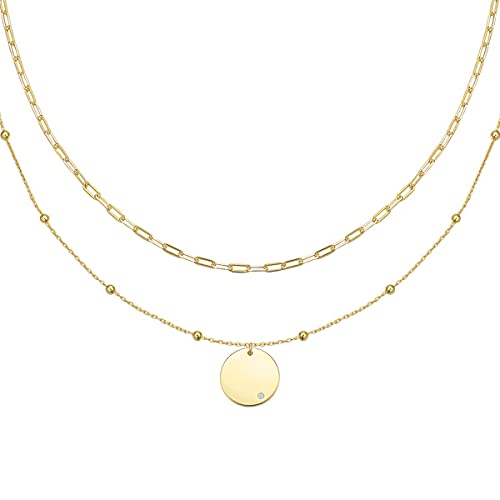 Agvana Collana da Donna A Doppio Strato Placcato in oro 14K, Argento Sterling 925 Collane A Strati Collana con Ciondolo Disco Moneta Gioielli Delicati, Regali per le Donne, 16+2 Pollici