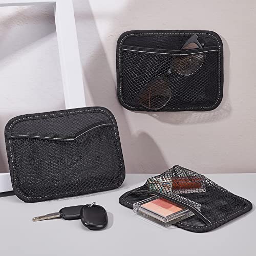AHANDMAKER 4 Confezione Tasca Portaoggetti in Rete per Auto, Tasca A Rete Universale per Auto con Nastro Adesivo Resistente Tasca Laterale per Porta Occhiali da Sole per Cellulare Tasche