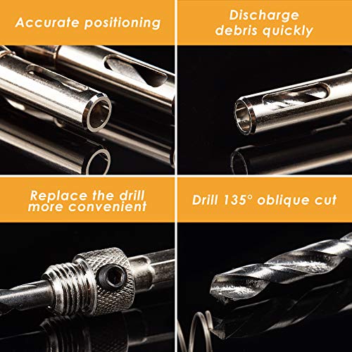 Design eccellente: il set di punte centrale dispone di autocentramento per ridurre la camminata della punta aumenta la precisione ed efficienza durante la perforazione. Design con foro double-face, scarico automatico Sawdust dal foro su entrambi i lati, senza blocco.