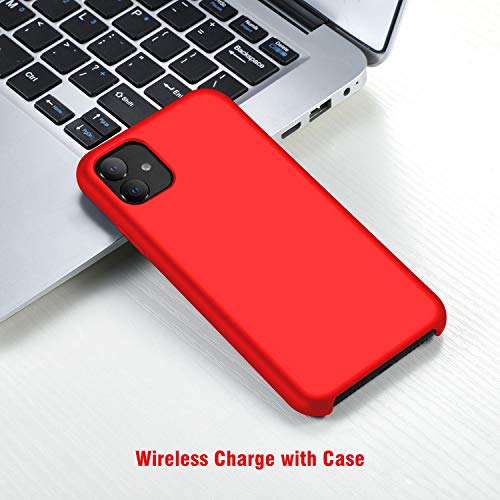 AhaSky custodia in silicone liquido per iPhone 11, custodia in gomma gel antiurto per tappetino in morbida microfibra per Apple iPhone 11 6.1 Pollici - Rosso