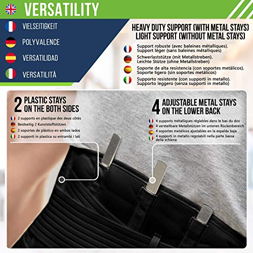 Fascia lombare supporto schiena: busto ortopedico per spondilite, stenosi e instabilità lombari. Il design della nostra fascia elastica lombare include 4 supporti metallici regolabili nella parte bassa della schiena e 2 supporti in plastica ai lati, rinforzando la colonna vertebrale per il massimo supporto. Ideale per uomini e donne in cerca di sollievo.