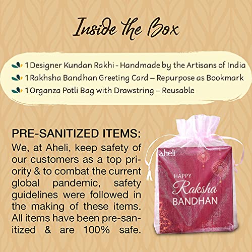 Aheli indiano tradizionale elegante Kundan Leaf Rakhi per fratelli uomini ragazzi con biglietto di auguri Raksha Bandhan