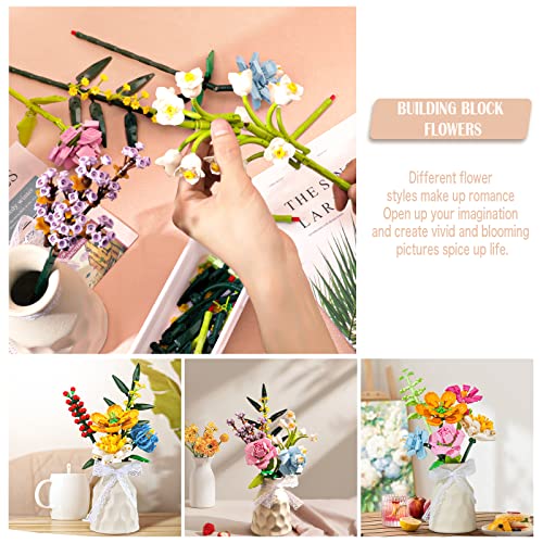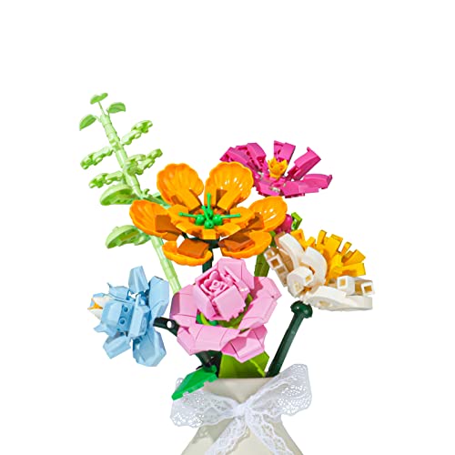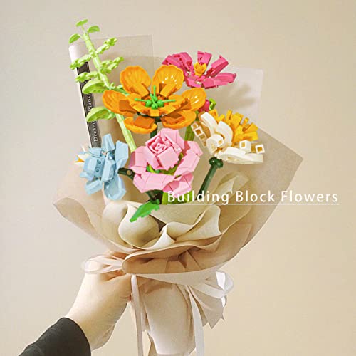 AHRITA Mattoni Bouquet di Fiori Set, Fiori Artificiali Building Blocks, Kit da Costruzione in Mattoncini, Collezione Botanica Creativa per Decorazione per la Casa, 6 PCS