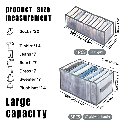 AHRITA 4 Pezzi Organizer Armadio Salvaspazio, Cassetti per Armadio Organizer Cassetti Organizzatore Divisori per Jeans, Leggings e Magliette Underwear, con 7 Scomparti Griglie