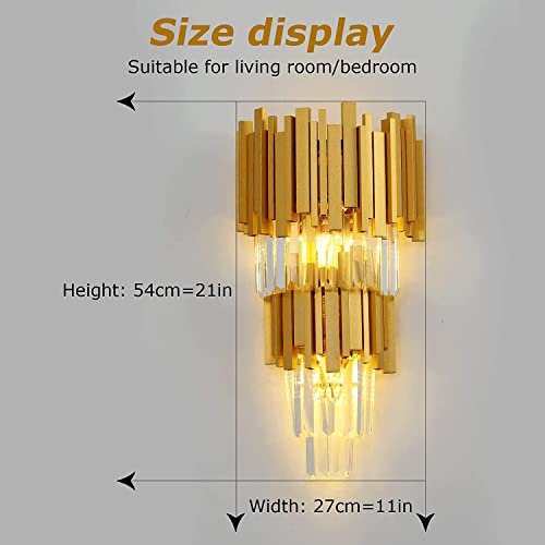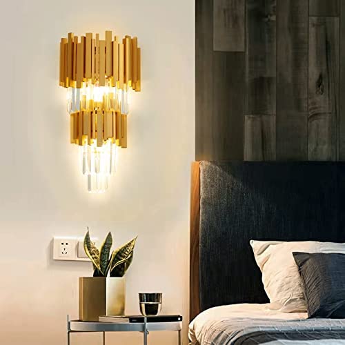 AHXIAOZN Lampada da parete in cristallo,E14 Applique da parete in cristallo,Lampada da comodino Moderna per camera da letto Bagno Soggiorno Corridoio(54 * 27 Cm Oro)