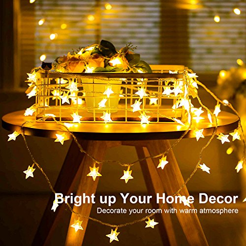 ✔ AMBIENTE D'ALLUMINIO ARREDATO! Questa meravigliosa luce calda a forma di stella bianca a forma di stella è composta da 80 lampade a stella a fiato e la lunghezza totale è di 10 metri.