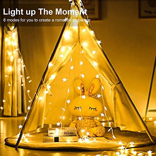 AI-Light stella catena luminosa,80LED luci della stringa,10M Stringa Illuminazione Batteria Alimentato,Calda Bianca,Decorativa da Interni e Esterni,anche per Festa,Giardino,Natale,Halloween,Matrimonio