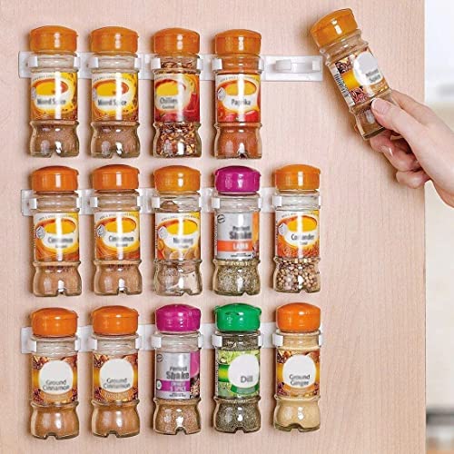 Aibada-4 x 5 clip per spezie ed erbe aromatiche, organizer per 20 vasetti per spezie ed erbe aromatiche, adatto per cucina, dispensa e armadietti, contenitore per spezie, salvaspazio bianco