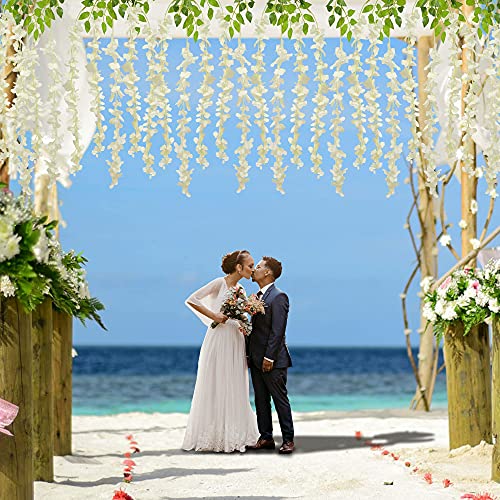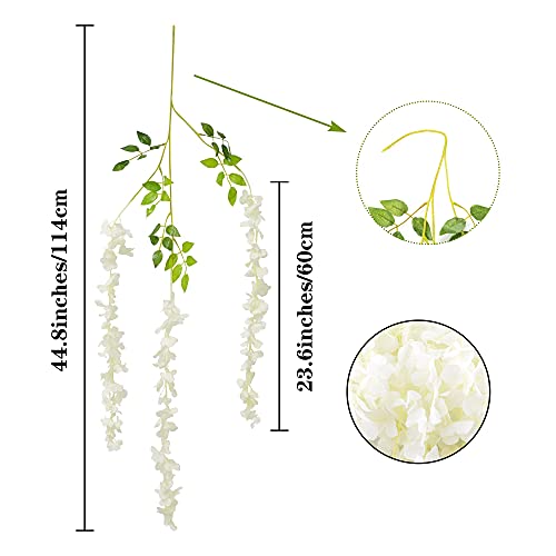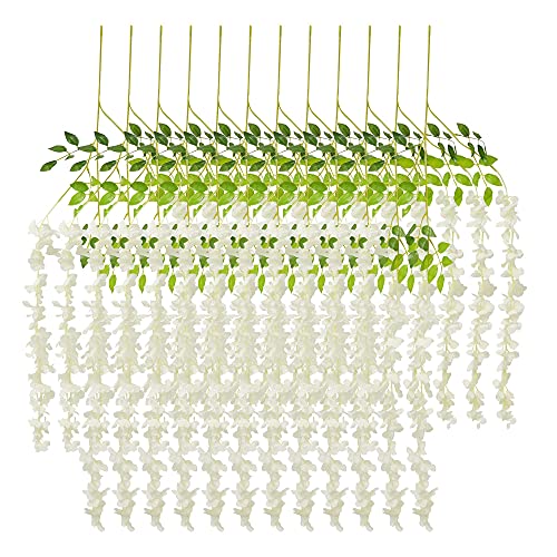 AIBAOBAO Fiori Artificiali Wisteria 12PCS, Ghirlanda di Vite di Fiori Falsi, Appeso Piante Trailing Bush String Flower per Matrimonio, Festa, Casa, Giardino, Esterno, Decorazione Interna (Bianco)