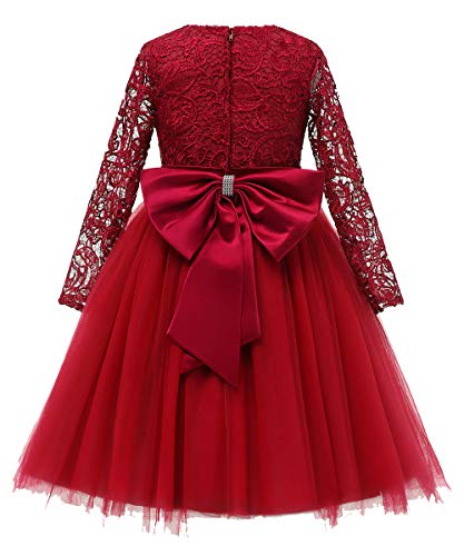 Aibaowedding - Abito da principessa, a maniche lunghe, in pizzo, per ragazze, gonna in tulle, per compleanno, feste, abito da damigella d'onore, 2-12 anni, rosso vivo, 8-9 Anni