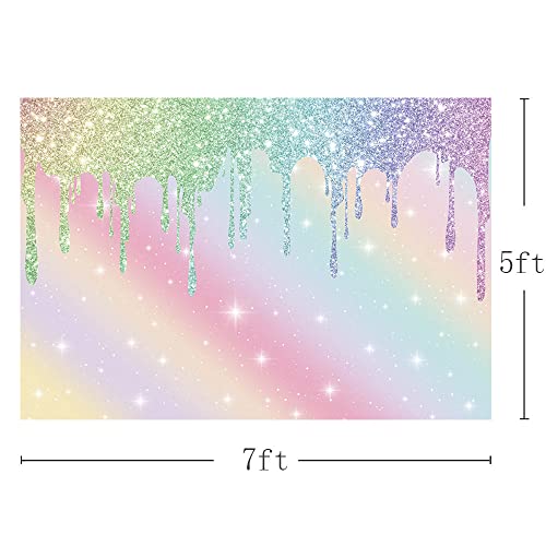 AIBIIN 7x5ft Ragazza Glitter Arcobaleno Festa di Compleanno Sfondo Lucido Paillettes Stelle Acquerello Pastello Fotografia Sfondo Bambini Principessa Baby Shower Torta Smash Tavolo Decorazione Foto