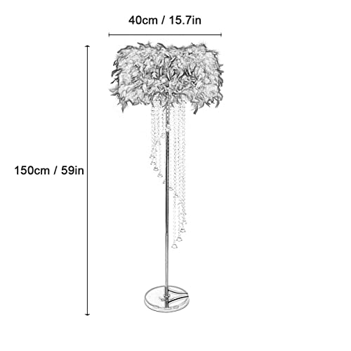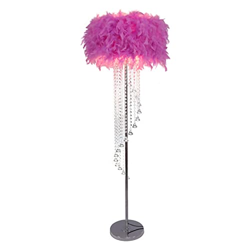 AIBOTY Lampada da Terra Feather con Cristallo Spirale Lampada da Terra Moderna in Piuma Lampada da Terra per Lettura con Paralume a Tamburo per Soggiorno Camera da Letto, 16"× 59",Fuchsia