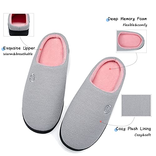 AICARE Pantofole Uomo Donna Autunno e Inverno Pantofole Memory Foam Calore Comode Pantofole Peluche Casa Pantofole antiscivolo Scarpe Indoor Outdoor Pantofole in feltro Comode Grigio Rosa-3839