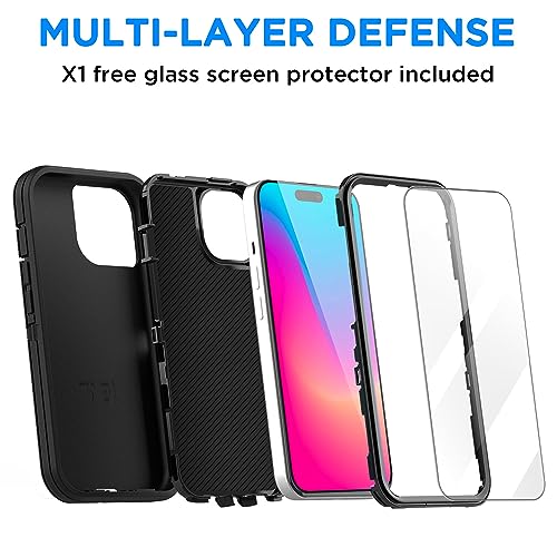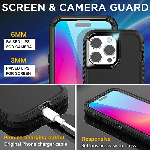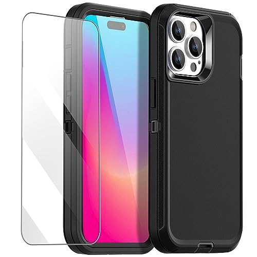 AICase compatibile con iPhone 15 Pro Proteggi schermo in vetro, Resistente agli urti, alle cadute e alla polvere, 3 strati Protezione completa del corpo, Robusto e durevole, Nero
