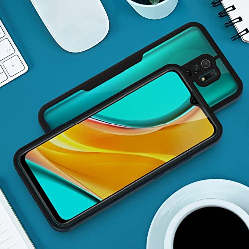 AICEK Compatibile con Xiaomi Redmi 9 Cover, 360 Gradi Full Body Custodia per Redmi 9 Bumper Case Cover e Pellicola Schermo Protettivo Screen Protector Antiurto Nero