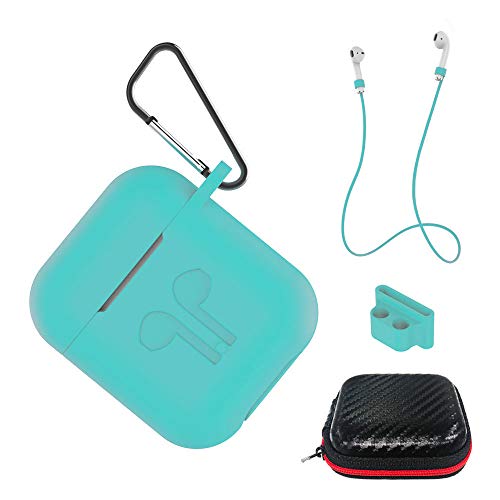 AICEK Custodia Compatiblile con AirPods 1 & 2 Cover Silicone Case per Apple AirPods Protective Accessori con Moschettone,Earpod Cover Verde