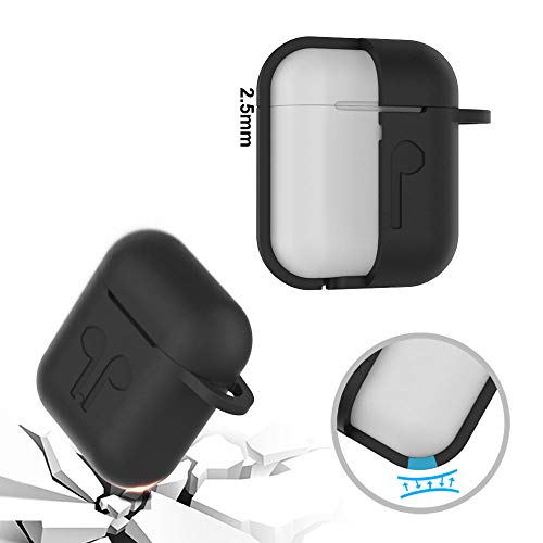 AICEK Custodia Compatiblile con AirPods 1 & 2 Cover Silicone Case per Apple AirPods Protective Accessori con Moschettone,Earpod Cover Nero