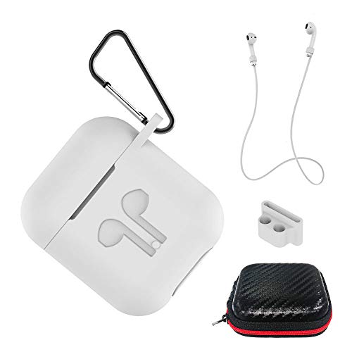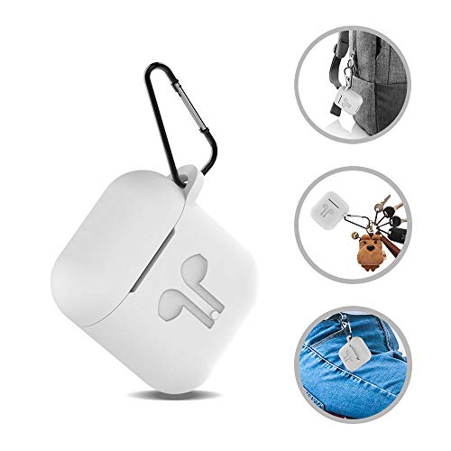 AICEK Custodia Compatiblile con AirPods 1 & 2 Cover Silicone Case per Apple AirPods Protective Accessori con Moschettone,Earpod Cover Bianco