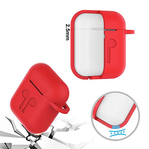 AICEK Custodia Compatiblile con AirPods 1 & 2 Cover Silicone Case per Apple AirPods Protective Accessori con Moschettone,Earpod Cover Rosso