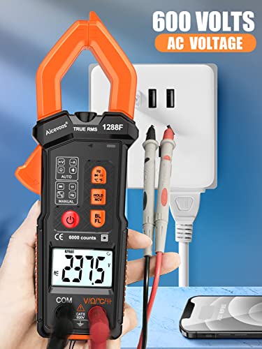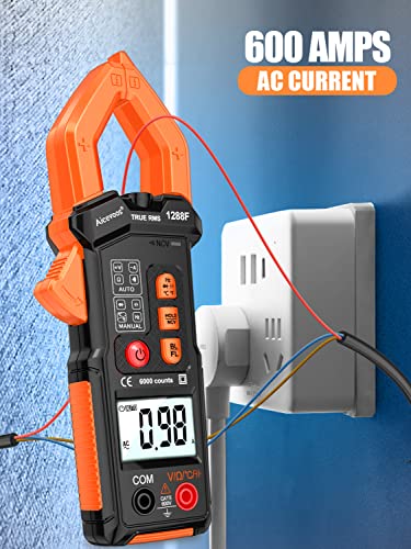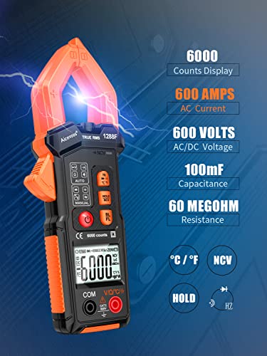 Aicevoos 1288F Multimetro a pinza digitale 6000 conteggi Amp Voltage Tester Auto-ranging, misura corrente tensione temperatura capacità resistenza diodi continuità duty-cycle