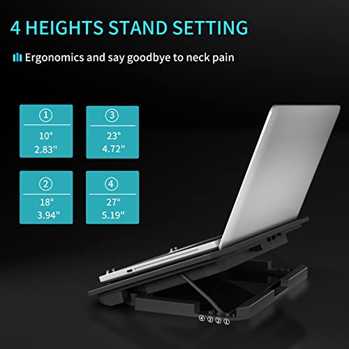 Supporti ergonomici per altezze - Una volta che il gancio è caduto, è bloccato in posizione ed è molto comodo regolare gli angoli e le altezze, gli angoli possono cambiare da 10 a 27 gradi, sollevando il tuo laptop da 2,83 "a 5,19", fornendoti un una postura migliore e più confortevole quando si utilizza il laptop