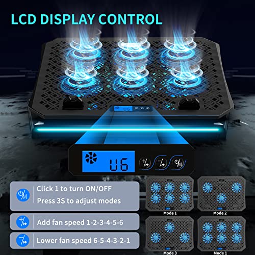 AICHESON Cuscinetto di raffreddamento per computer portatile con 6 ventole di raffreddamento per computer portatili da 11" a 15,6", luci blu