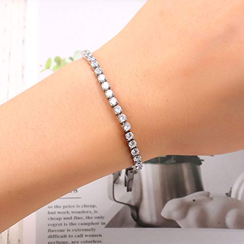 Aichva - Braccialetto da tennis in acciaio INOX con zirconia cubica tagliata a diamante, 3 mm, 20,3 cm