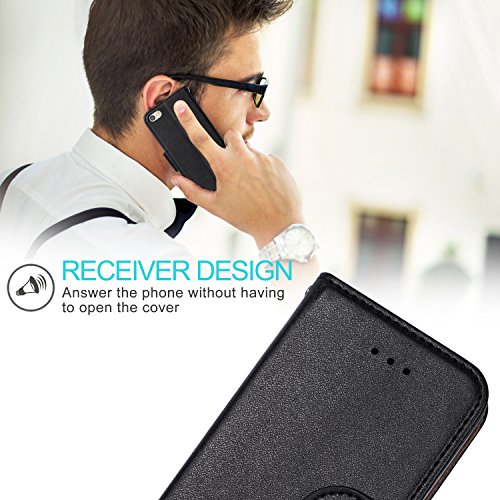 Aicoco Cover iPhone 5, Custodia iPhone 5S, Custodia di Pelle Case Flip per Apple iPhone 5 / 5S / SE - Nero