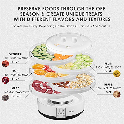 Aicook Essiccatore, Essiccatore Alimenti 5 Ripiani Altezza Regolabile, Essiccatore Professionale Superficie Opaca Contro Luce Nociva, 40-70℃ per Carne, Frutta, Verdura, BPA Free, 500W