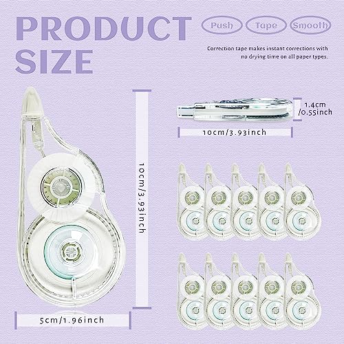 Preziosa confezione da 10 - La dimensione di ogni nastro correttivo è di 12m x 5mm, una lunghezza sufficiente per soddisfare le vostre esigenze di utilizzo. Allo stesso tempo, il nastro correttore è abbastanza piccolo da poter essere inserito in un astuccio o in una tasca, rendendolo facile da trasportare. Essenziale per l'ufficio e la scuola.