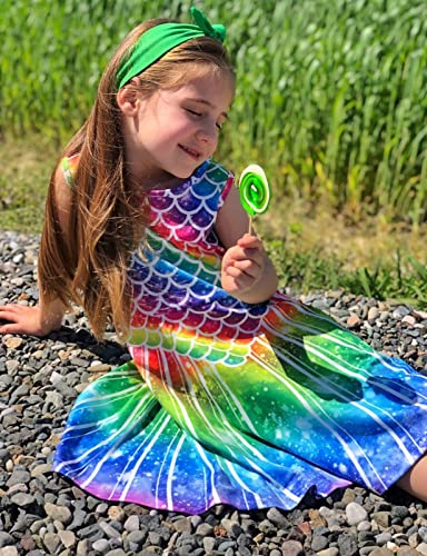 AIDEAONE Abito Senza Maniche con Scollo Tondo e Stampa a Sirena per Bambine Abito Carino a Trapezio 8-9 Anni,L