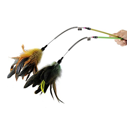 AIDIYA Giocattolo Gatto Piuma Cat Giocattolo Interattivo Retrattile Bacchetta Rod con Feather Teaser Cat Catcher (Verde)