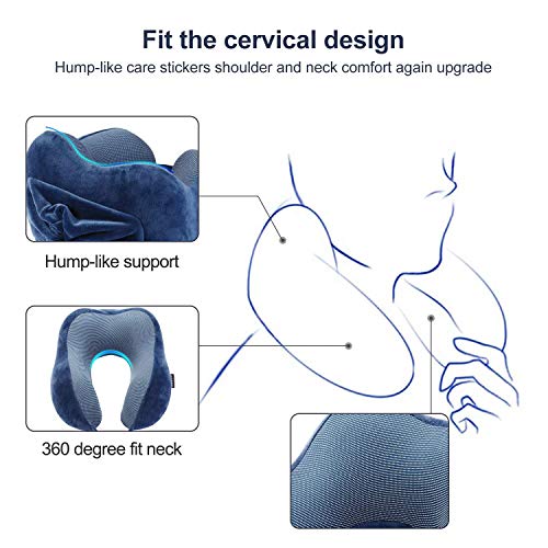 Aidodo Cuscino da Viaggio Memory foam con Tappi per le Orecchie e Maschera per ochi 360 Head & tridimensionale pieno supporto cervicale collo cuscino da viaggio perfetto per aereo auto & home use