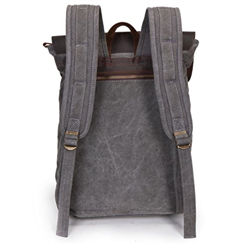 Aidonger Unisex Tela e Pelle Zaino per la scuola Computer portatile borsa (Grigio-35)
