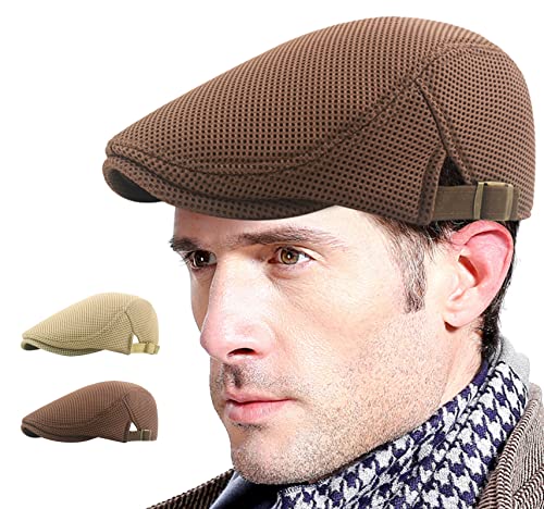 AIEOE Baschi Scozzesi da Uomo Coppola Uomo Cappello con Visiera Piatta Berretto Estivo in Rete Traspirante Regolabile